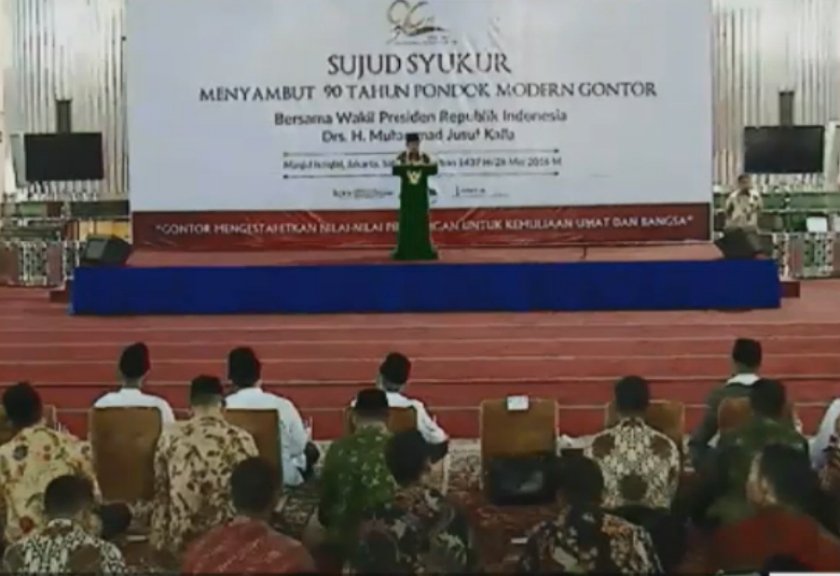 “Gontor yang menjadi pelopor perubahan-perubahan pesantren menjadi lebih modern, lebih menguasai zaman, harus melanjutkan pola pendidikan yang mengajarkan tentang bagaimana belajar berusaha, mandiri lebih baik, untuk mencapai masyarakat yang lebih baik,” kata Wapres JK saat mengunjungi Pondok Pesantren Modern Darussalam di Gontor, Ponorogo, Jawa Timur, Kamis, 3 Oktober 2019.