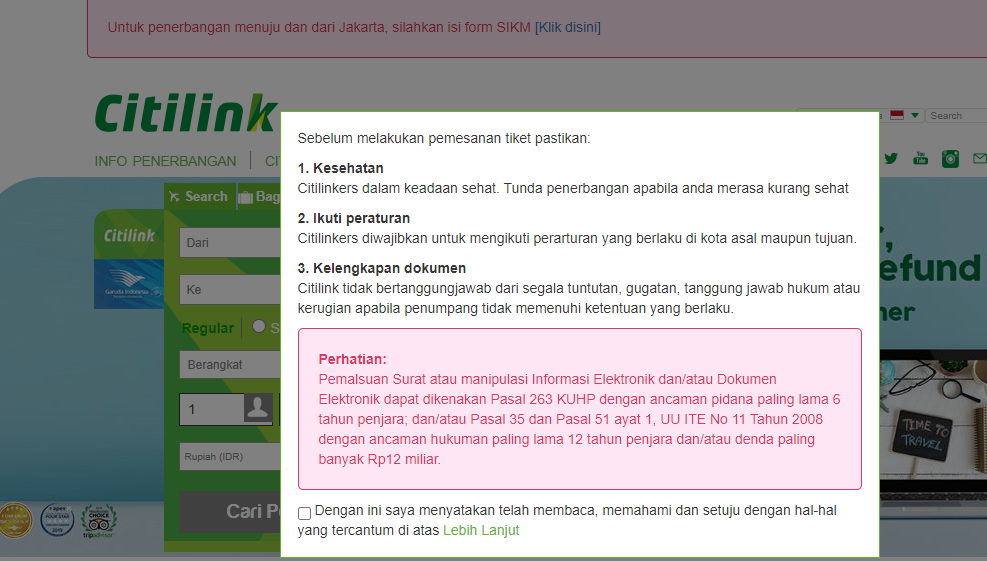 Citilink memastikan penumpang yang terbang sedang berada dalam kondisi sehat dengan mewajibkan penumpang untuk menunjukkan surat keterangan bebas Covid-19 (hasil test PCR atau rapid test).