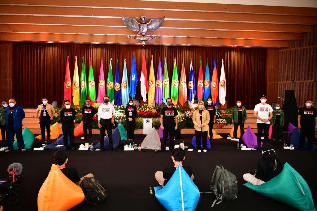 Nadiem Anwar Makarim menyampaikan bahwa Presiden mendukung program Kampus Merdeka dan semua perubahan-perubahan yang dilakukan Kemendikbudristek.