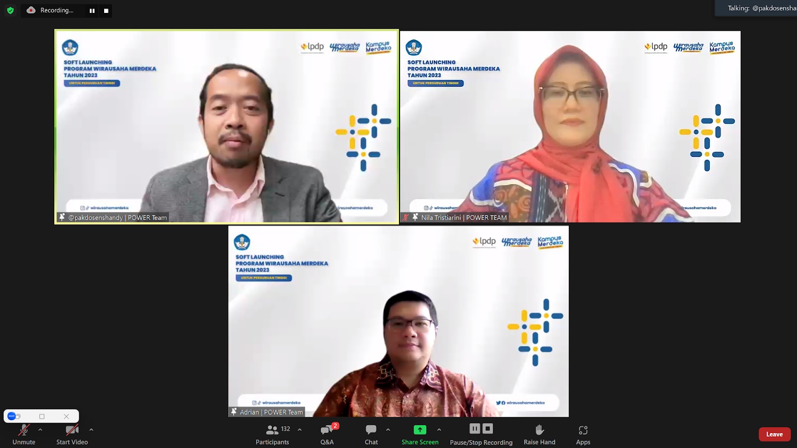 Untuk menghimpun minat perguruan tinggi serta berbagai pemangku kepentingan lainnya dalam pelaksanaannya, Kementerian Pendidikan, Kebudayaan, Riset, dan Teknologi (Kemendikbudristek) menyelenggarakan Soft Launching Program Wirausaha Merdeka Tahun 2023 untuk perguruan tinggi yang tergabung dalam LLDIKTI Wilayah II, VIII, IX, X, XI, XII, XV dan XVI, Jumat (24-3-2023) secara daring.
