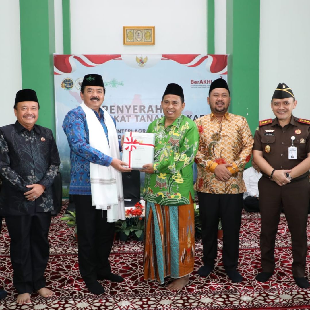 Schoolmedia News Jakarta --- Menteri Agraria dan Tata Ruang/Badan Pertanahan Nasional (ATR/BPN) Hadi Tjahjanto menyerahkan 62 sertifikat tanah wakaf dengan luas 55.104 m2 untuk kegiatan Nahdlatul Ulama (NU).