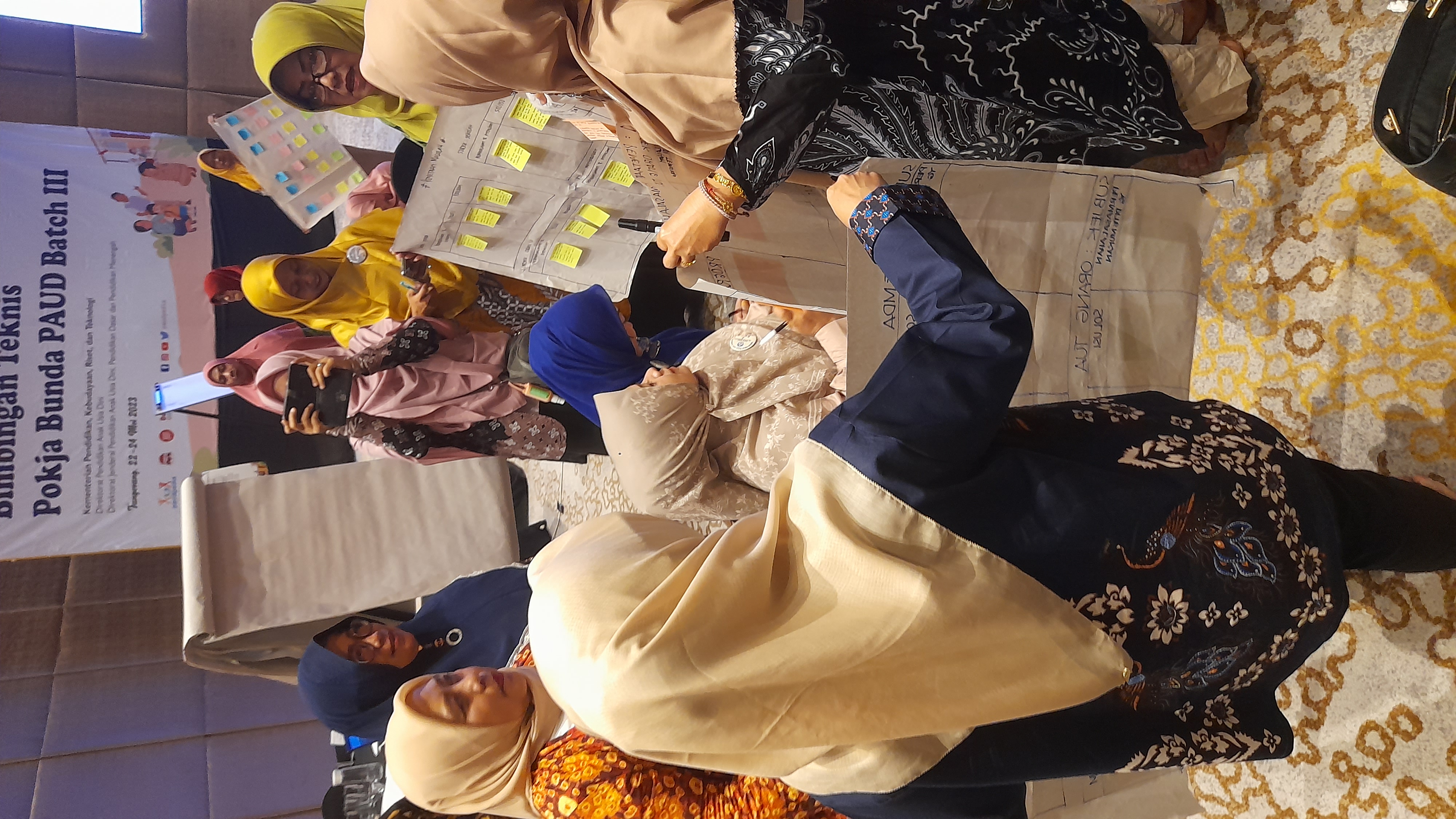 Keseruan semakin bertambah ketika sejumlah Pokja Bunda PAUD lebih memilih menuliskan gagasan diatas kertas sambil duduk diatas lantai. Sebagian lagi tampak membuka gawai untuk mencari inspirasi rencana strategis paling tepat untuk daerahnya dalam mengawal serta mengimplementasikan Gerakan Transisi PAUD ke SD yang Menyenangkan.