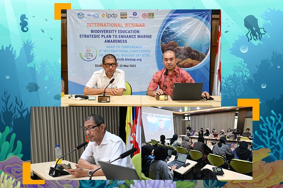 Webinar ketiga dengan judul “International Webinar on Biodiversity Education: Strategic Plan to Enhance Marine Awareness” diselenggarakan pada tanggal 22 Mei 2023. Narasumber pada webinar ketiga ini adalah dekan Fakultas Perikanan dan Ilmu Kelautan IPB University, Prof. Fredinan Yulianda dan Prof. Lawrence Liao dari Hiroshima University.