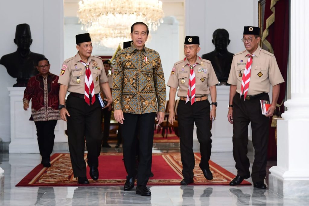 Schoolmedia News Jakarta ---- Presiden RI Joko Widodo (Jokowi) menerima kunjungan Ketua Kwartir Nasional (Kwarnas) Gerakan Pramuka, Budi Waseso, pada Jumat (14/07/2023), di Istana Merdeka, Jakarta. Dalam kesempatan tersebut, Budi Waseso melaporkan langsung kepada Kepala Negara terkait sejumlah acara yang akan digelar dan diikuti Kwarnas dalam rangka Hari Pramuka, salah satunya adalah Jambore Dunia diselenggarakan pada 1-12 Agustus 2023 di Saemangeum, Jeolla Utara, Korea Selatan, diikuti sekitar 30.000-50.000 peserta dari seluruh penjuru dunia.