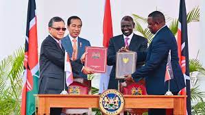 Selanjutnya, Presiden Jokowi dan Presiden Kenya bergabung bersama delegasi masing-masing negara di Credential Hall untuk melaksanakan pertemuan bilateral. Di ruangan yang sama, usai pertemuan bilateral, kedua pemimpin negara menyaksikan proses penandatanganan dan pertukaran nota kesepahaman kerja sama kedua negara.