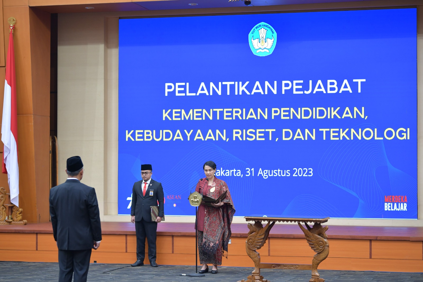 Schoolmedia News Jakarta --- Sekretaris Jenderal (Sekjen) Kementerian Pendidikan, Kebudayaan, Riset, dan Teknologi (Kemendikbudristek), Suharti, melantik Sekretaris Direktorat Jenderal (Sesditjen) Pendidikan Anak Usia Dini, Pendidikan Dasar, dan Pendidikan Menengah (PDM), Praptono, pada hari ini, Kamis (31/8) di Jakarta. Kepada pejabat yang baru saja dilantik, ia berharap kolaborasi sebagai prinsip utama dalam menjalankan tugas.
