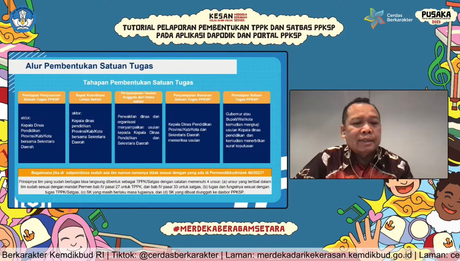 “Dalam kelas kita hari ini, Bapak Ibu akan dipandu tentang bagaimana alur dan mekanisme pembentukan TPPK dan Satgas PPKSP sesuai Permendikbudristek PPKSP, serta tutorial pelaporannya baik TPPK dan Satgas PPKSP ke dalam sistem Dapodik dan Portal PPKSP. Sehingga setiap pembentukan TPPK dan Satgas PPKSP dapat tercatat ke dalam data terintegrasi di pusat dan dapat dipantau oleh publik sebagai bentuk transparansi pelayanan publik,” jelasnya.
