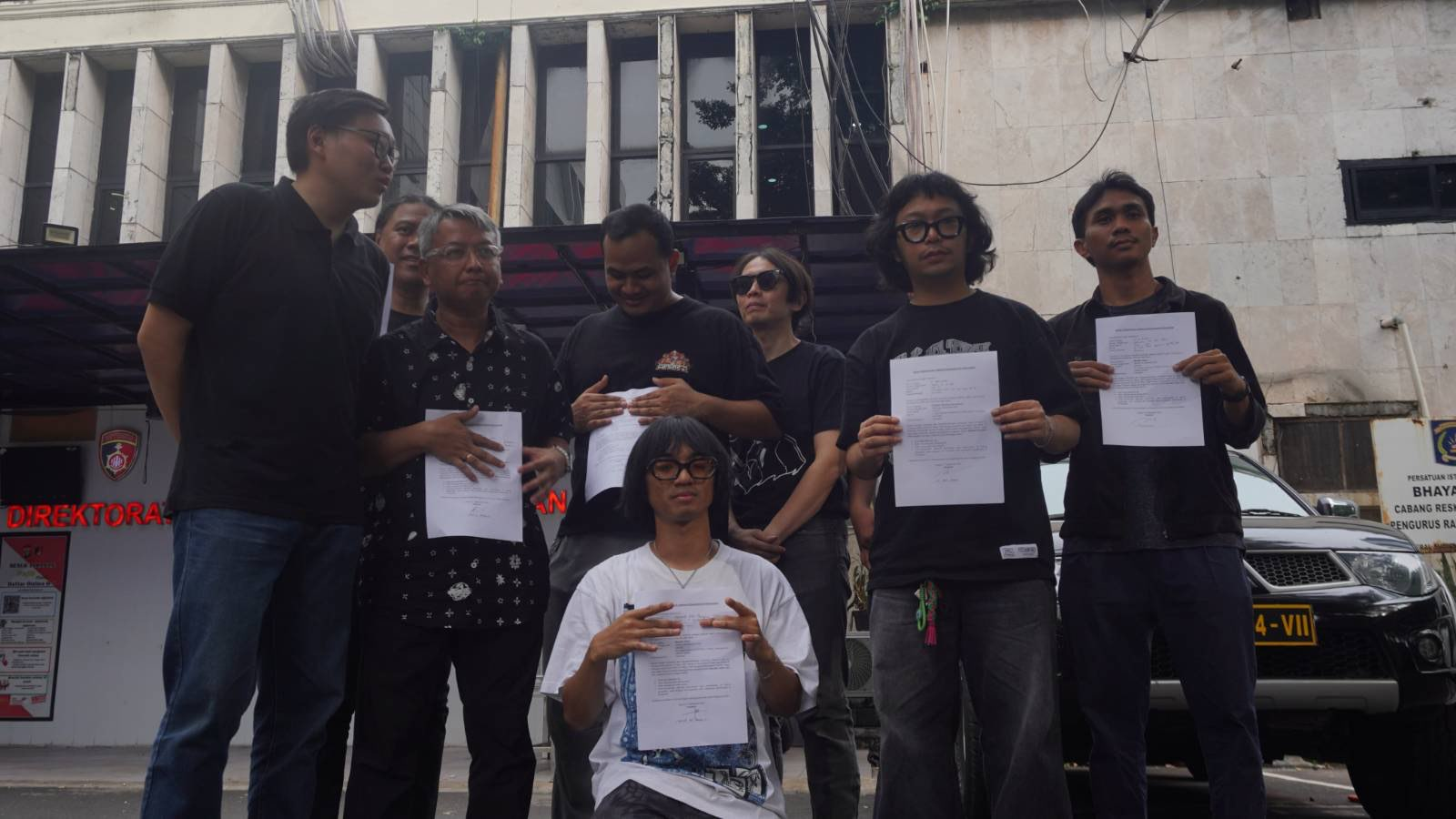 “Kami datang bukan hanya sebagai musisi, tapi sebagai warga negara yang peduli. Mereka ditahan hanya karena menyampaikan aspirasi masyarakat, sesuatu yang dijamin oleh konstitusi,” ujar Cholil saat menyampaikan keteranngannya.