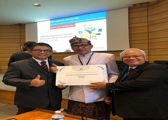 SCHOOLMEDIA NEWS, Jakarta -  Indonesia menerima penghargaan literasi tingkat dunia, The UNESCO Confucius Prize for Literacy. Penerima penghargaan tersebut adalah BASAbali Wiki, sebuah organisasi yang berupaya melestarikan bahasa Bali melalui pembuatan aplikasi digital kamus bahasa Bali.