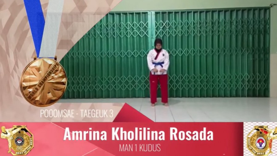 Schoolmedia News Kudus ---- Prestasi kembali diraih oleh Amrina Kholilina Rosada. Siswi kelas XI IPS 1, meraih Juara 2 Best of The Best virtual Taekwondo Championship (Piala Menpora).