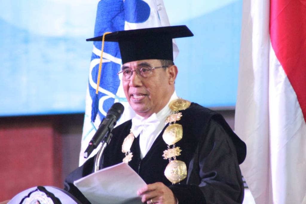 Setelah dikukuhkan, Prof Nyoman Jampel menyampaikan orasi ilmiah berjudul "Kepemimpinan Harmoni pada Era Post-Massification Pendidikan Tinggi".