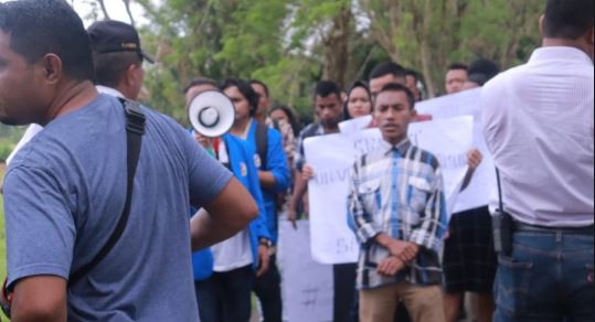 Demonstrasi yang dikoordinasikan oleh Badan Eksekutif Mahasiswa (BEM) Fakultas Ilmu Sosial dan Ilmu Politik (FISIP) itu digelar di komplek Fakultas Keguruan dan Ilmu Pendidikan (FKIP), tidak jauh dari gedung Student Center, lokasi berlangsungnya pemilihan rektor Unpatti.