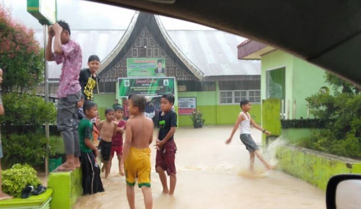 SCHOOLMEDIA NEWS, Simpang Empat - Siswa di Sekolah Dasar Negeri 06 Sungai Beremas, Kabupaten Pasaman Barat, Sumatera Barat  diliburkan  sekolah karena banjir yang melanda daerah itu, Kamis (31/10).
