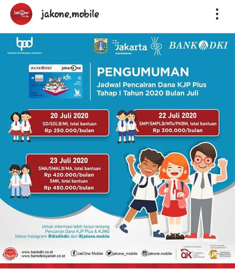 "Ada info penting yang harus banget kamu ketahui nih, yaitu pencairan dana KJP Plus Tahap I tahun 2020 bulan JULI dijadwalkan cair mulai tanggal 20 Juli 2020," tulis akun tersebut.
