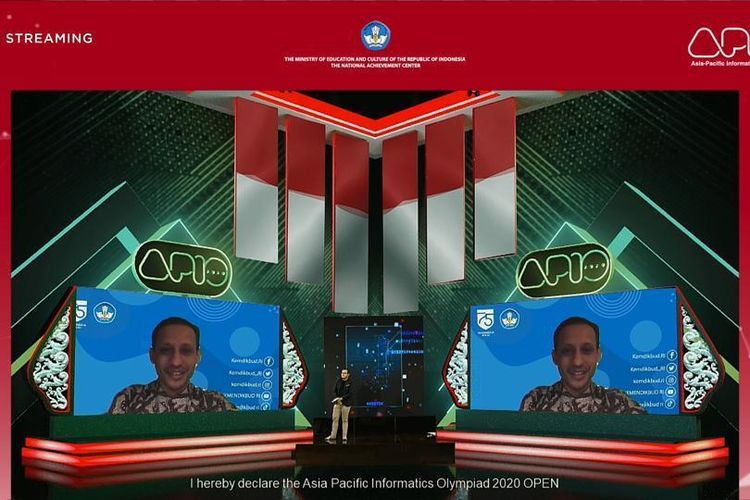 Mendikbud Nadiem Makarim saat membuka Asia Pacific Informatics Olympiad (APIO) ke-13 secara di Tangerang, Banten (14/8/2020), Foto: Dok Kemdikbud