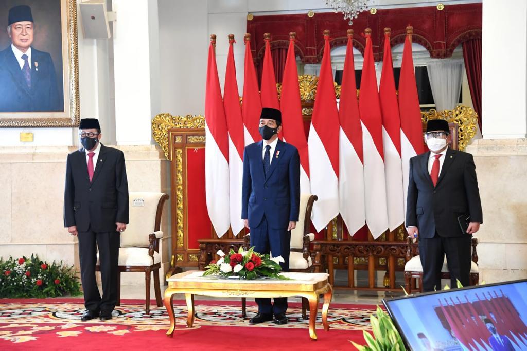 "Di tengah pandemi Mahkamah Agung mengambil langkah cepat dengan mengubah mekanisme persidangan konvensional menjadi elektronik," kata Ketua MA yang menyampaikan laporan dari Gedung Mahkamah Agung. Turut mendampingi Presiden di Istana Negara yaitu Menteri Hukum dan Hak Asasi Manusia Yasonna Laoly dan Sekretaris Kabinet Pramono Anung.
