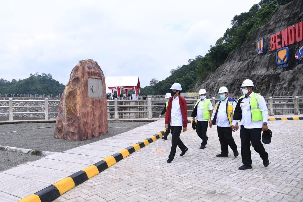 Presiden Joko Widodo meresmikan Bendungan Tapin yang berada di Kabupaten Tapin, Provinsi Kalimantan Selatan, dalam kunjungan kerjanya pada Kamis, 18 Februari 2021. Pembangunan bendungan yang diikuti dengan pembangunan jaringan irigasi hingga ke lahan-lahan sawah milik petani tersebut dilakukan dalam lima tahun pengerjaan dengan biaya mencapai Rp986,5 miliar.. Foto : Dok Setneg