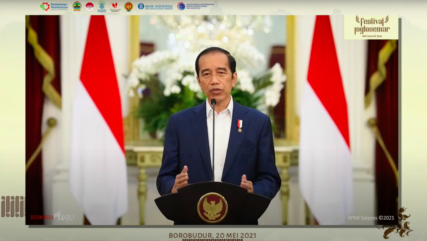“Kita ingin mengisi momentum kebangkitan nasional ini dengan mempercepat kebangkitan produk-produk buatan Indonesia, kebangkitan produk-produk UMKM kita yang mampu menghasilkan produk-produk berkualitas tinggi, menguasai pasar dalam negeri, lebih kompetitif di pasar global, dan UMKM naik kelas,” ujar Presiden RI Joko Widodo (Jokowi) dalam sambutan virtualnya pada pembukaan Festival Joglosemar: Artisan of Java, Kamis (20/05/2021), dari Istana Kepresidenan Bogor, Jawa Barat.