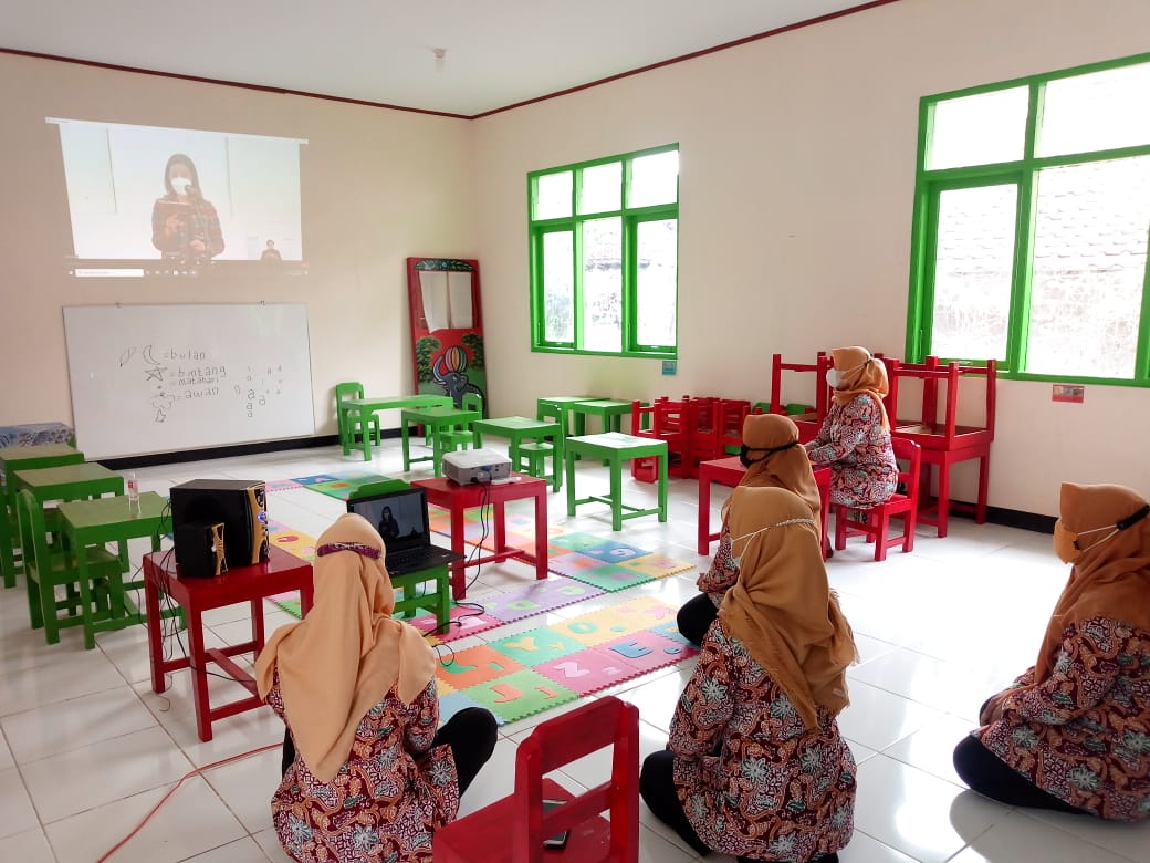 Agar ruangan menjadi luas, lanjut Ine, TK Langgeng Garjita menggabungkan dua ruang kelas menjadi satu kelas dengan menambah pendamping satu orang. “Tadinya mau menggunakan shifting ketika kelas hanya maksimal 5 siswa per kelas. Namun karena di sini daerahnya dataran tinggi jadi tidak setiap hari siswa datang ke sekolah sehingga kami sepakat untuk dibuat dalam satu kelas dengan memakai dua kelas dengan dua guru,” tuturnya.