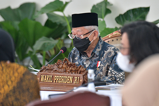 Sementara Wapres didampingi oleh Kepala Sekretariat Wapres Ahmad Erani Yustika, Deputi Bidang Dukungan Kebijakan Pembangunan Manusia dan Pemerataan Pembangunan Suprayoga Hadi, Staf Khusus Wapres Masduki Baidlowi, Muhammad Imam Aziz, dan Bambang Widianto, serta Plt. Deputi Bidang Dukungan Kebijakan Pembangunan Ekonomi dan Peningkatan Daya Saing Muchammad Zulkarnai