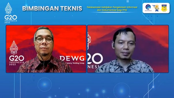 Kegiatan Bimtek dilanjutkan dengan sesi diskusi dengan tiga orang narasumber. Narasumber sesi pagi hadir secara daring, Direktur Tata Kelola dan Kemitraan Komunikasi Publik (Direktur TKKKP), Hasyim Gautama, dan Komisioner Komisi Informasi Pusat (KIP), Handoko Agung Saputro yang hadir secara luring.