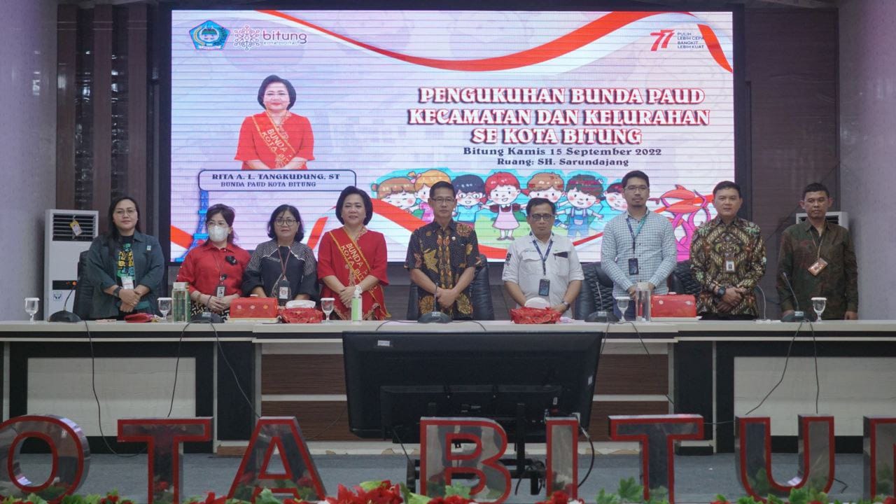 Wakil Wali Kota Bitung Hengky Honandar, bersama Bunda PAUD Kota Bitung Ny Rita A L Tangkudung, membuka kegiatan Pengukuhan Bunda PAUD tingkat kecamatan dan Kelurahan Kota Bitung yang bertempat di Ruang S H Sarundajang.