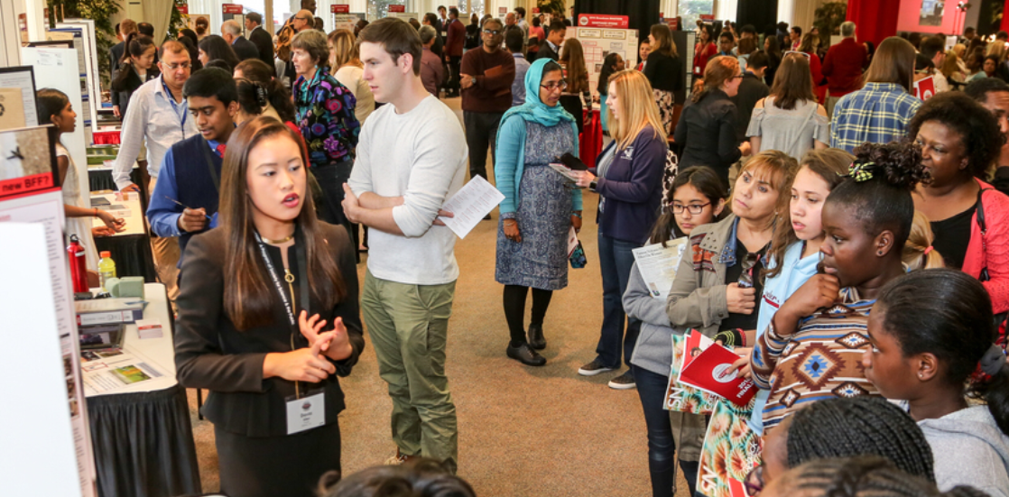 Para peserta memamerkan hasil penelitian mereka pada ajang Intel International Science and Engineering Fair (ISEF) 2018, Sumber:findafair.societyforscience.org
