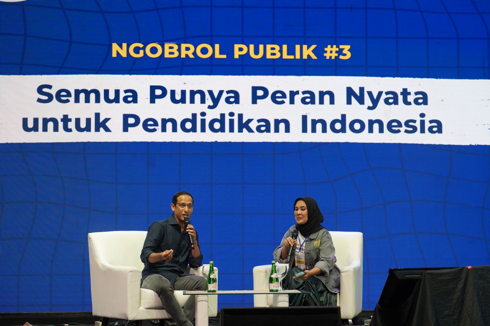 Dalam acara Belajar Raya 2023 di Posbloc, Jakarta, pada Sabtu (29/7), Mendikbudristek berdiskusi dengan Inisiator Semua Murid Semua Guru dan Najelaa Shihab tentang kebijakan zonasi.