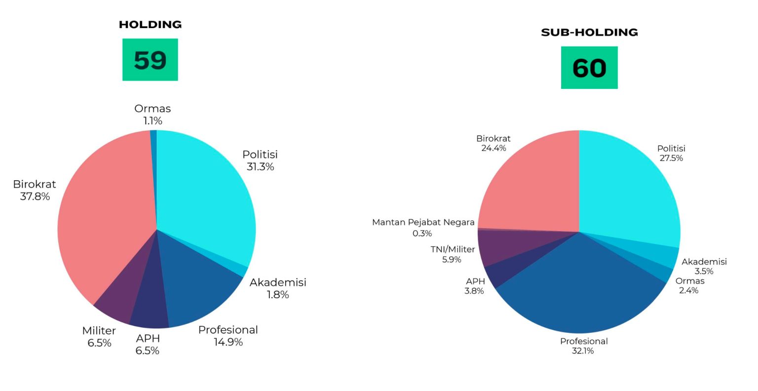 Riset TI Indonesia terhadap 119 perusahaan BUMN (induk dan anak usaha) mengungkap bahwa total 562 jabatan komisaris didominasi oleh Politically Exposed Persons (PEPs). Mayoritas (60%) kursi pengawasan strategis ini diisi oleh birokrat dan politisi.
