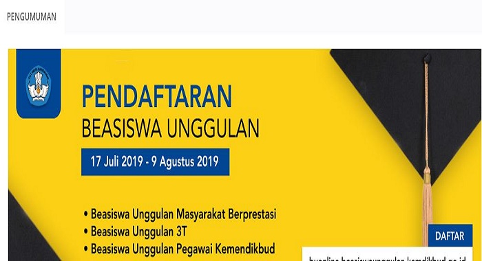 SCHOOLMEDIA NEWS, Jakarta - Kementerian Pendidikan dan Kebudayaan membuka pendaftaran beasiswa unggulan mulai 17 Juli hingga 9 Agustus 2019. Kepala Biro Perencanaan dan Kerja Sama Luar Negeri Suharti mengatakan beasiswa ini bertujuan untuk mendukung upaya peningkatan kualitas sumber daya manusia Indonesia.