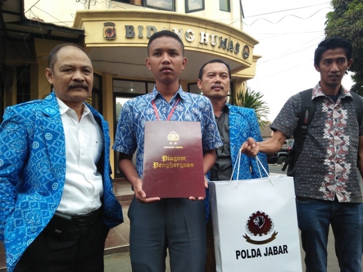 SCHOOLMEDIA NEWS, Cianjur - Ridwan Suryana pelajar SMK Pasundan 1 Cianjur, Jawa Barat, mendapat penghargaan dari sekolah sekaligus memberikan pembebasan biaya hingga lulus atas keberaniannya membantu Ipda Erwin yang mengalami luka bakar saat mengamankan aksi unjuk rasa.