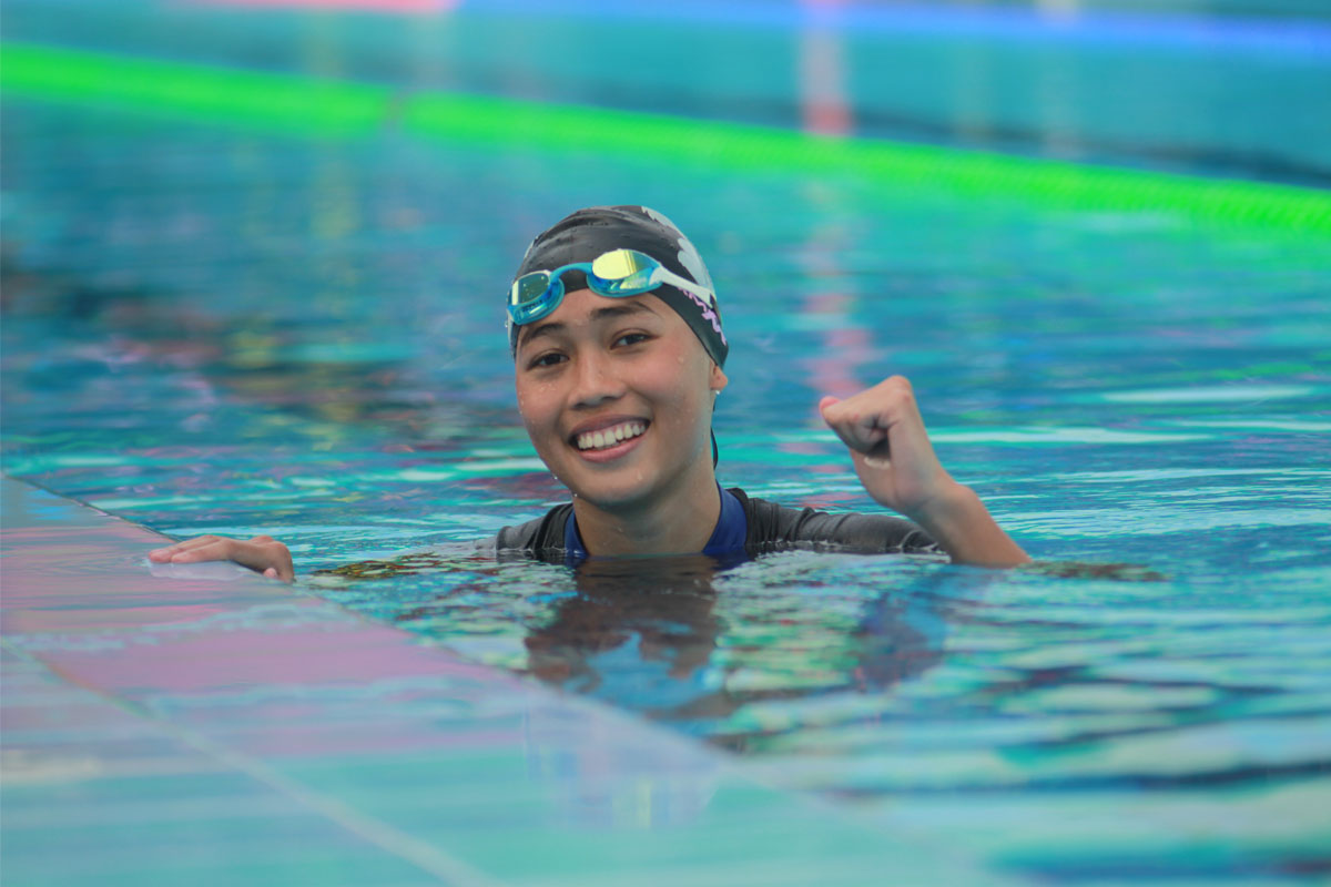 Perenang asal SMAN 1 Kuta Utara, Intan Putri Adhika Fenadi dari Provinsi Bali saat menungguli babak final Olimpiade Olahraga Siswa Nasional (O2SN) jenjang SMA di kolam renang Batalyon Raider 112/Dharma Jaya, Aceh, pada Rabu (28/8), Foto: Dit. PSMA