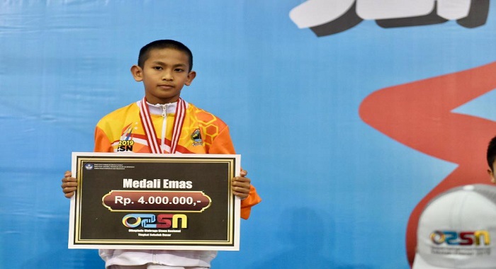 SCHOOLMEDIA NEWS, Semarang - Di ajang Olimpiade Olahraga Siswa Nasional (O2SN) tingkat sekolah dasar (SD), Zivran Daffa Putra mampu meraih dua medali emas cabang senam. Zivran bangga bisa memberikan sumbangan medali emas untuk tim tuan rumah, Provinsi Jawa Tengah.