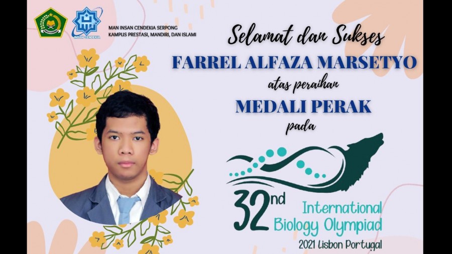 Schoolmedia News Jakarta ------ Farrel Alfaza Marsetyo baru saja menyelesaikan pendidikannya di Madrasah Aliyah Negeri Insan Cendekia (MAN IC) Serpong. Belum lama meninggalkan madrasahnya, siswa angkatan 24 ini mengharumkan nama Indonesia, meraih Medali Perak dalam ajang 32nd International Biology Olympiad (IBO) 2021 Lisbon Portugal.
